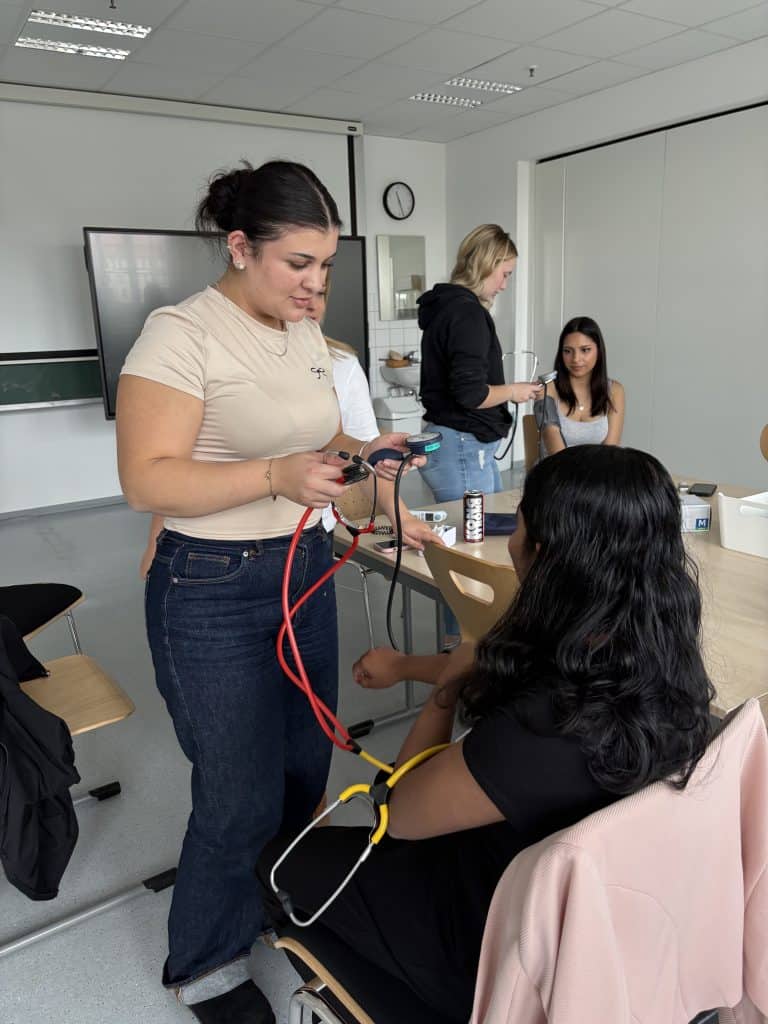Der Kurs GP 25/28 B nutzte seinen Übungstag, um theoretisches Wissen gezielt praktisch anzuwenden. An mehreren Stationen trainierten die Auszubildenden grundlegende pflegerische Fertigkeiten, darunter: